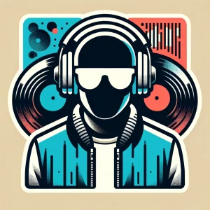 DALL·E 2024-02-19 12.04.28 – A minimalist ‘Sticker Art’ style urban DJ character using three contrasting colors for impact. Features include oversized headphones, sunglasses, and